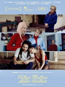 UN FILM « Father Mother Brother Sister » de Jim Jarmusch (janvier 2026, 1h51). Voilà un film qui divise, il y a les «pour» et il y a les «contre». Je me range dans la catégorie des «pour», sensible au mouvement poétique que le réalisateur crée autour de trois mini-fresques familiales minimalistes, énigmatiques, parfois facétieuses, à l’esthétique irréprochable dont le thème commun est la distance. Pesante dans «Father» mais malicieuse, glaçante dans «Mother», où Charlotte Rampling reçoit ses deux filles autour d’un thé pour la visite annuelle qu’elles font à leur mère, mystérieuse dans «Brother Sister» où deux jumeaux tentent de faire revivre leurs parents disparus. Nord des États-Unis, Dublin, Paris, trois lieux, des clins d’oeil qui relient les récits entre eux, une voiture qui roule, une blague qui revient, des skaters qui apparaissent fugitivement à l’image. À noter la belle voix d’Anika (These days, Spooky) sur la bande-son.